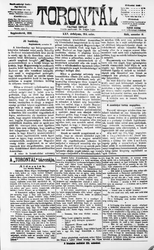 Torontál, 25. évf. 1896. november 16. 264. sz.