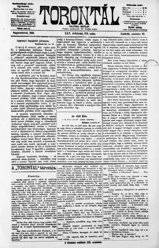 Torontál, 25. évf. 1896. november 26. 273. sz.