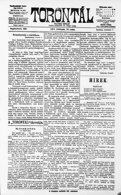Torontál, 25. évf. 1896. november 7. 257. sz.