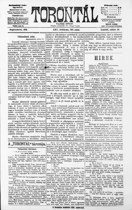 Torontál, 25. évf. 1896. október 29. 249. sz.