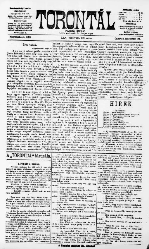 Torontál, 25. évf. 1896. szeptember 24. 219. sz.