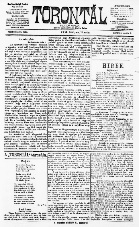 Torontál, 26. évf. 1897. április 1. 74. sz.