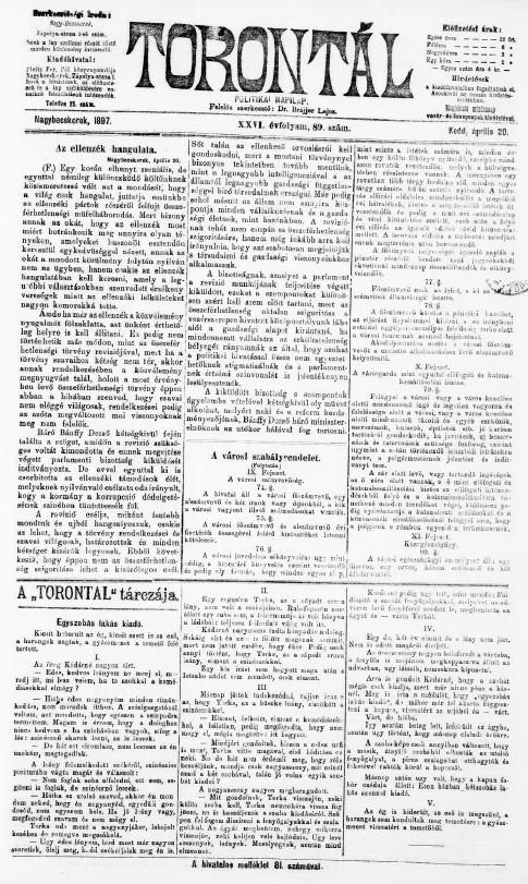 Torontál, 26. évf. 1897. április 20. 89. sz.