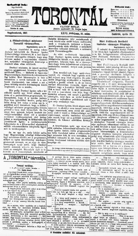 Torontál, 26. évf. 1897. április 22. 91. sz.