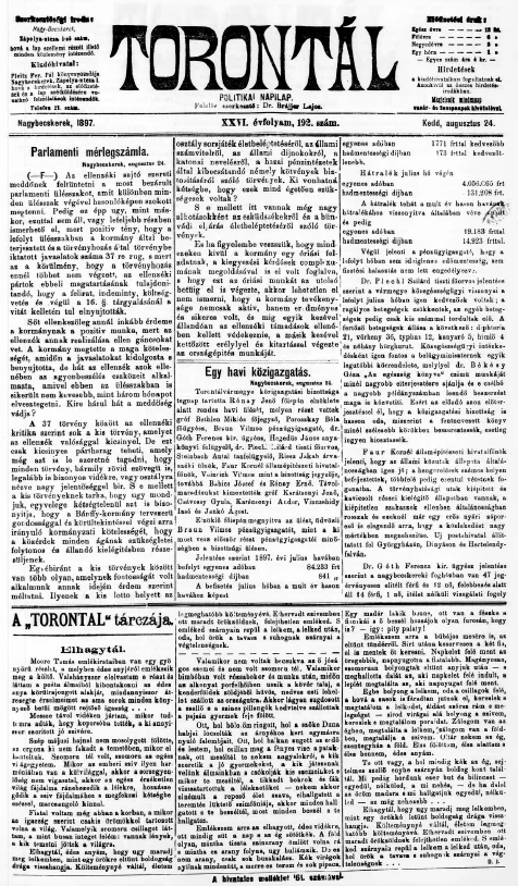 Torontál, 26. évf. 1897. augusztus 24. 192. sz.