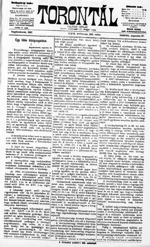Torontál, 26. évf. 1897. augusztus 26. 194. sz.