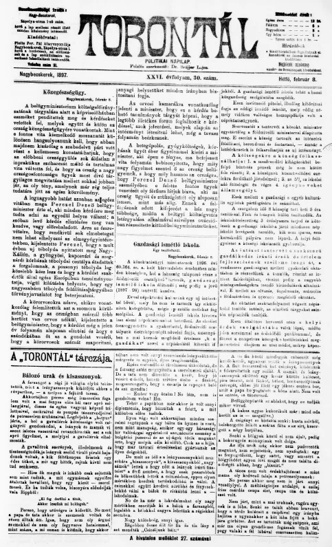 Torontál, 26. évf. 1897. február 8. 30. sz.