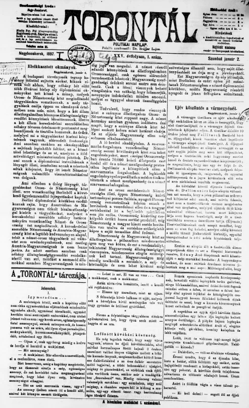 Torontál, 26. évf. 1897. január 2. 1. sz.