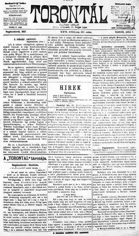 Torontál, 26. évf. 1897. július 1. 147. sz.