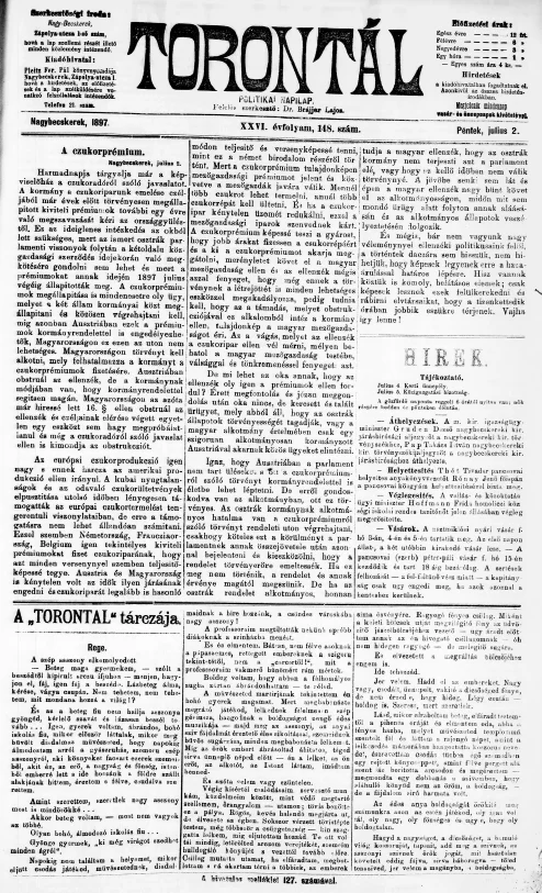 Torontál, 26. évf. 1897. július 2. 148. sz.