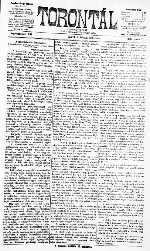 Torontál, 26. évf. 1897. június 21. 139. sz.
