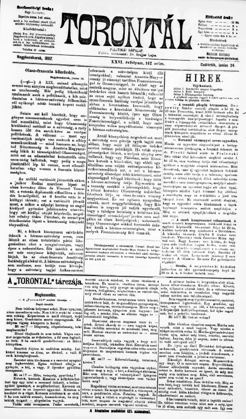 Torontál, 26. évf. 1897. június 24. 142. sz.