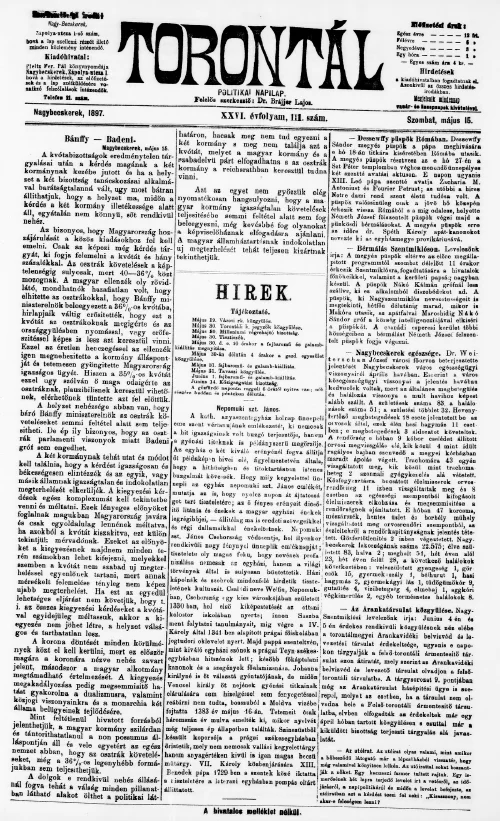 Torontál, 26. évf. 1897. május 15. 111. sz.