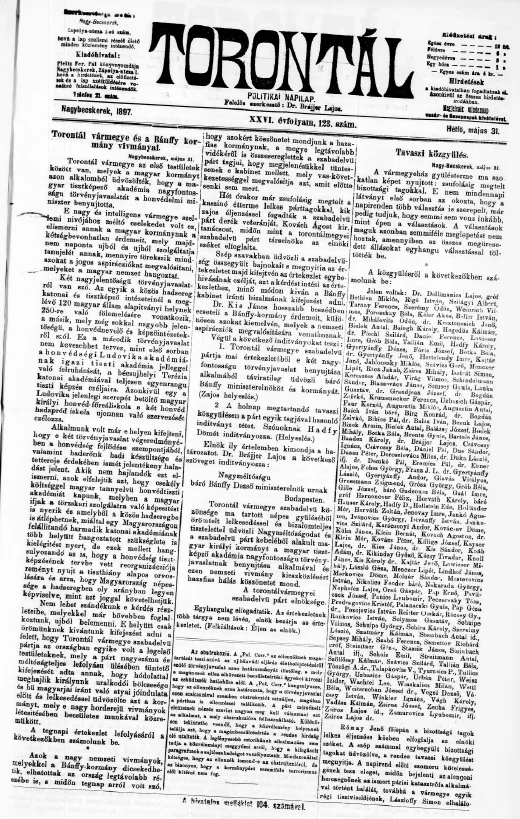 Torontál, 26. évf. 1897. május 31. 123. sz.