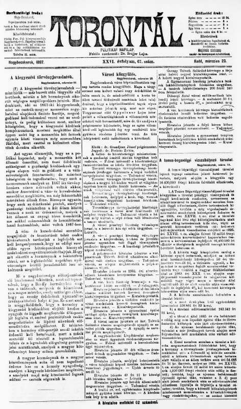Torontál, 26. évf. 1897. március 23. 67. sz.