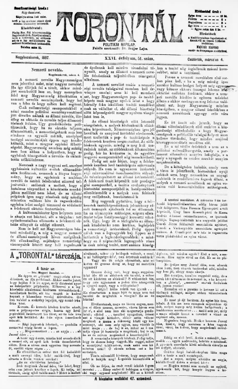 Torontál, 26. évf. 1897. március 4. 51. sz.