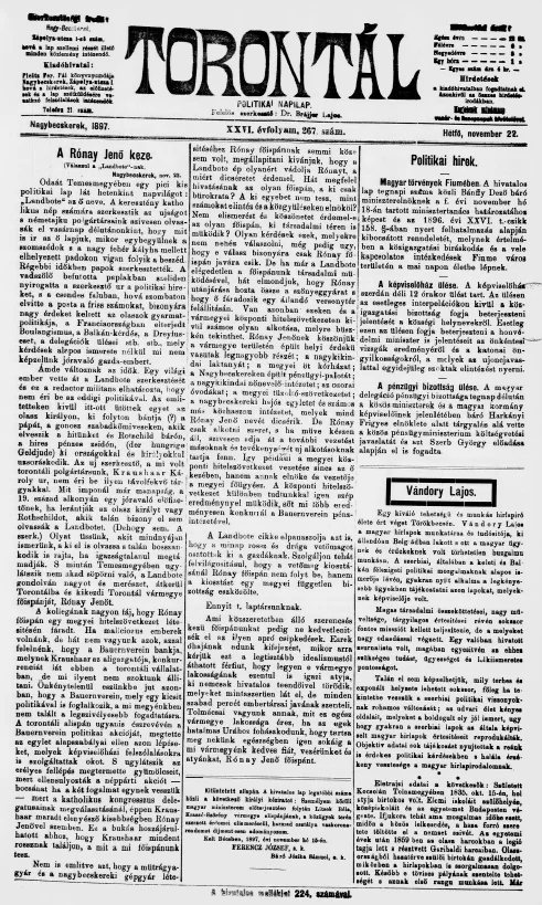 Torontál, 26. évf. 1897. november 22. 267. sz.