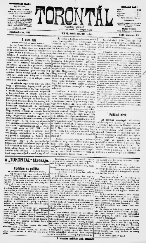Torontál, 26. évf. 1897. november 29. 273. sz.