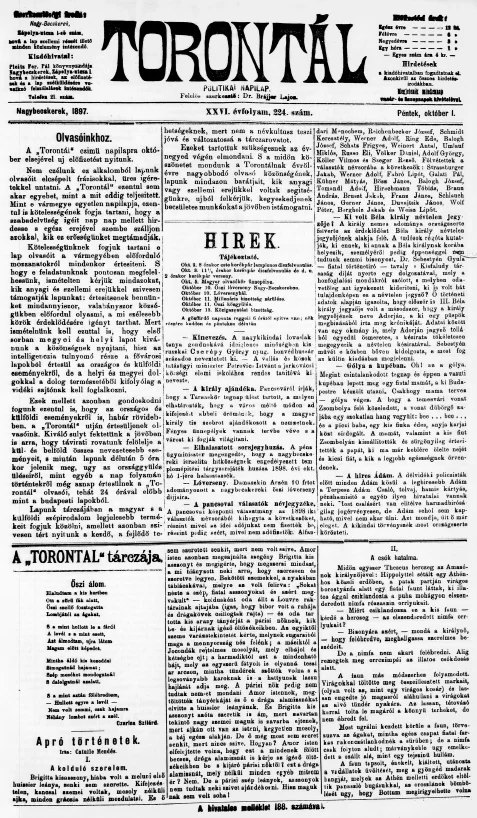 Torontál, 26. évf. 1897. október 1. 224. sz.