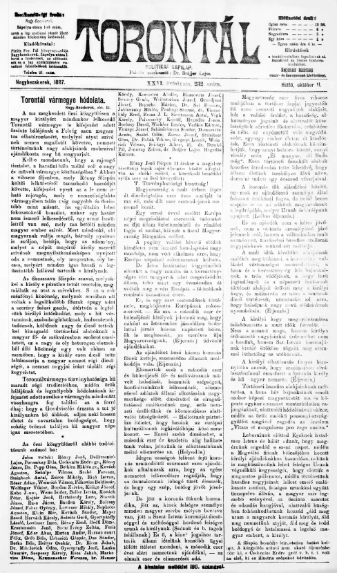Torontál, 26. évf. 1897. október 11. 232. sz.