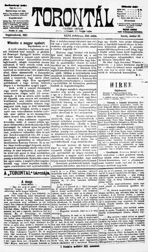 Torontál, 26. évf. 1897. október 20. 240. sz.