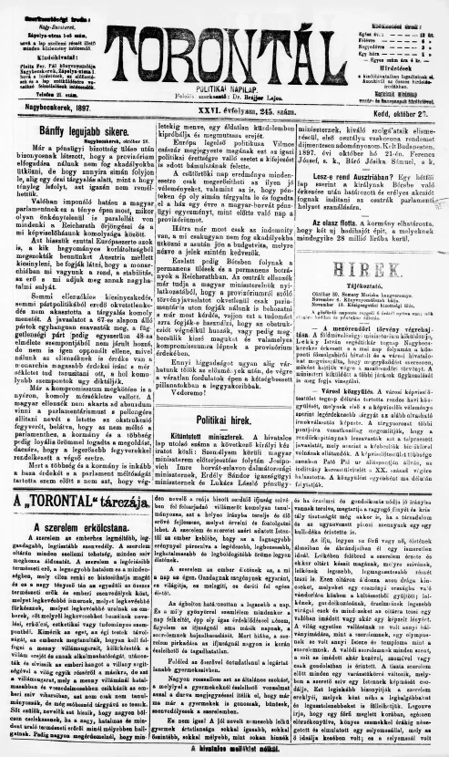 Torontál, 26. évf. 1897. október 26. 245. sz.