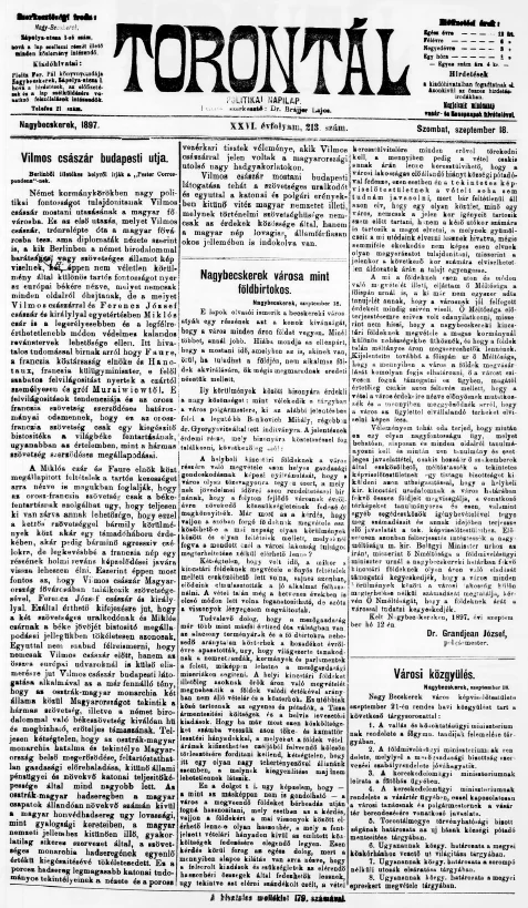 Torontál, 26. évf. 1897. szeptember 18. 213. sz.