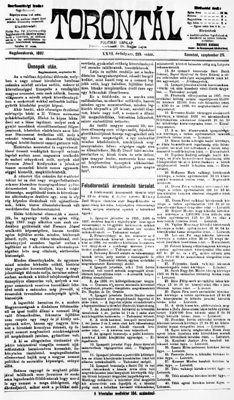 Torontál, 26. évf. 1897. szeptember 25. 219. sz.