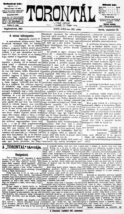 Torontál, 26. évf. 1897. szeptember 29. 222. sz.