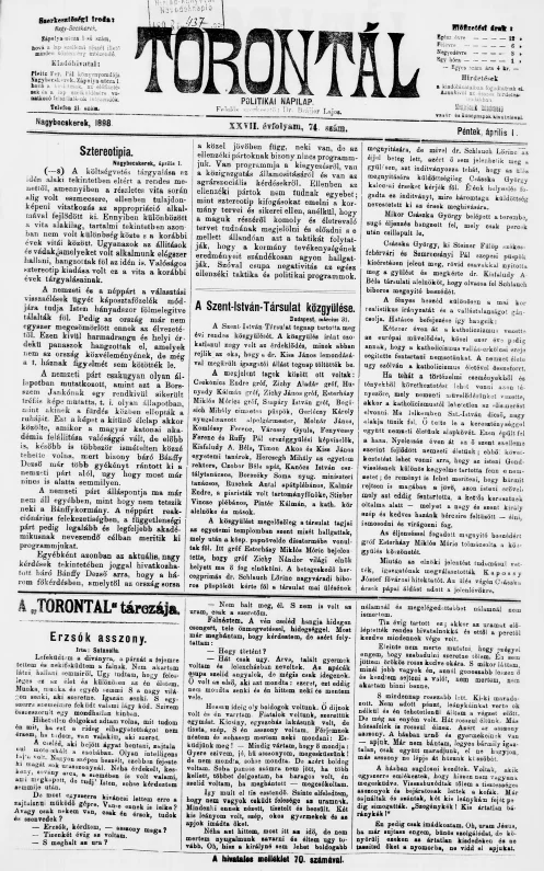 Torontál, 27. évf. 1898. április 1. 74. sz.