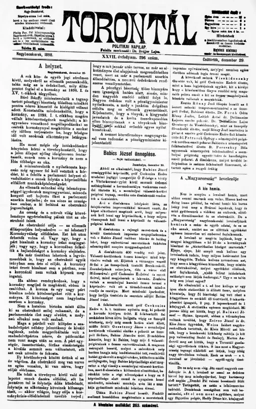 Torontál, 27. évf. 1898. december 29. 296. sz.