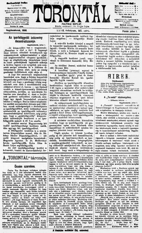 Torontál, 27. évf. 1898. július 1. 147. sz.