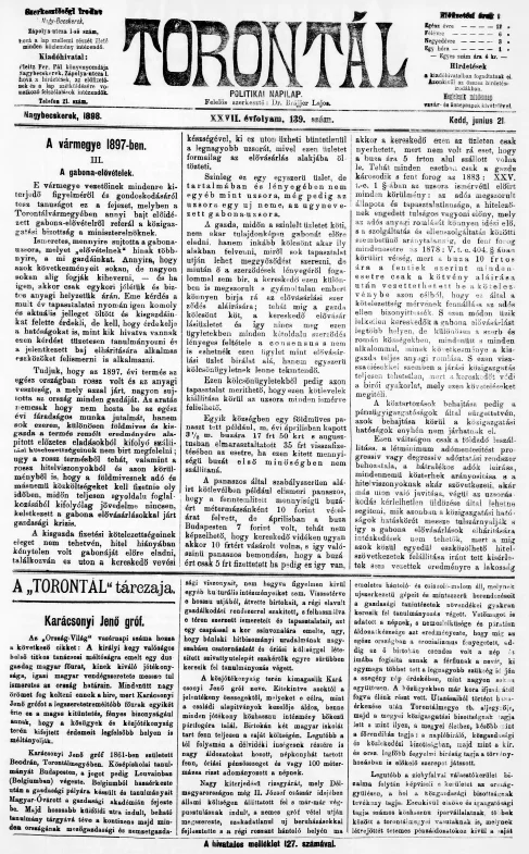 Torontál, 27. évf. 1898. június 21. 139. sz.