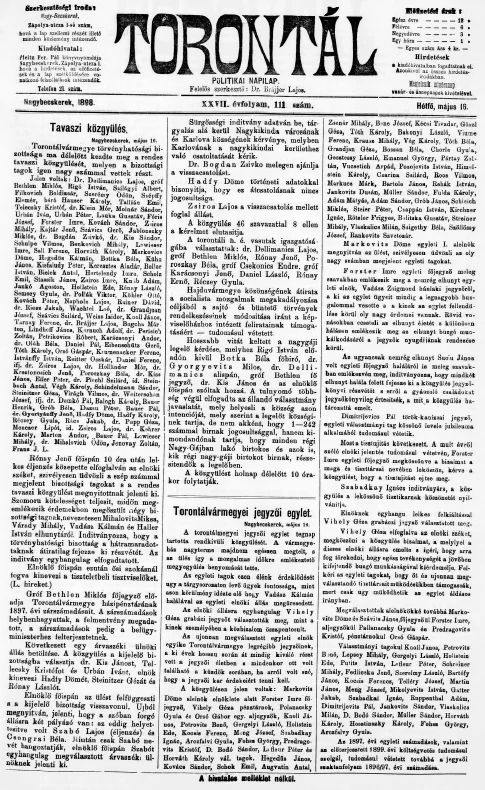 Torontál, 27. évf. 1898. május 16. 111. sz.