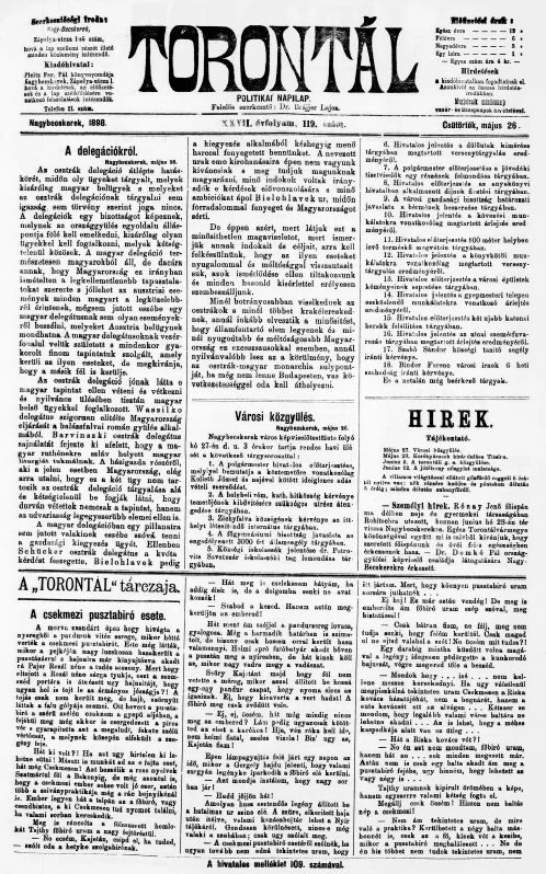 Torontál, 27. évf. 1898. május 26. 119. sz.