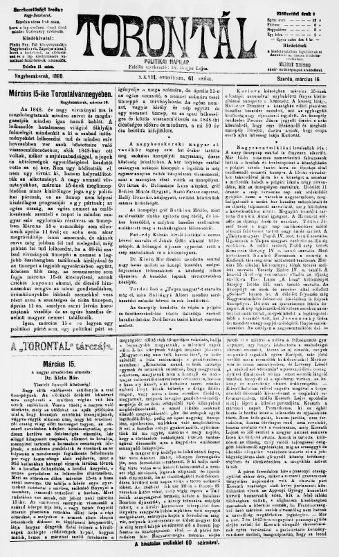 Torontál, 27. évf. 1898. március 16. 61. sz.