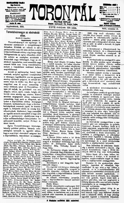 Torontál, 27. évf. 1898. november 14. 259. sz.