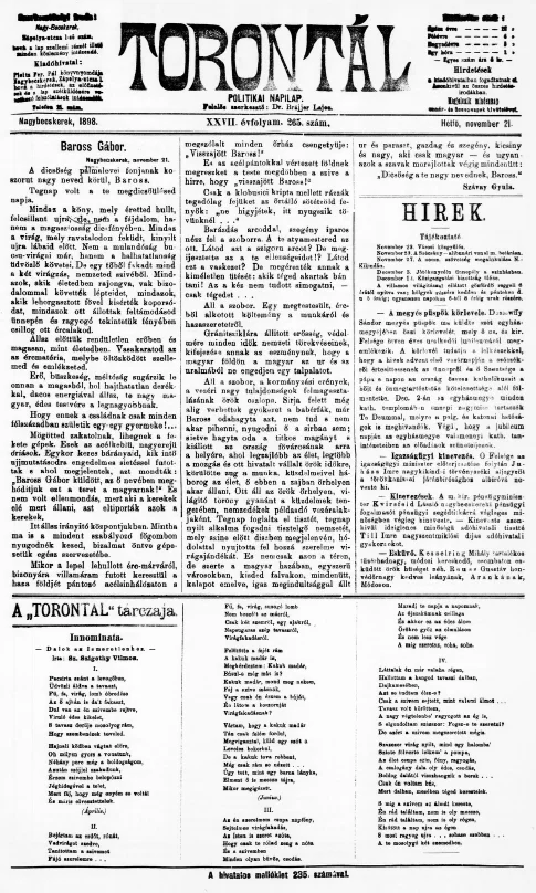 Torontál, 27. évf. 1898. november 21. 265. sz.