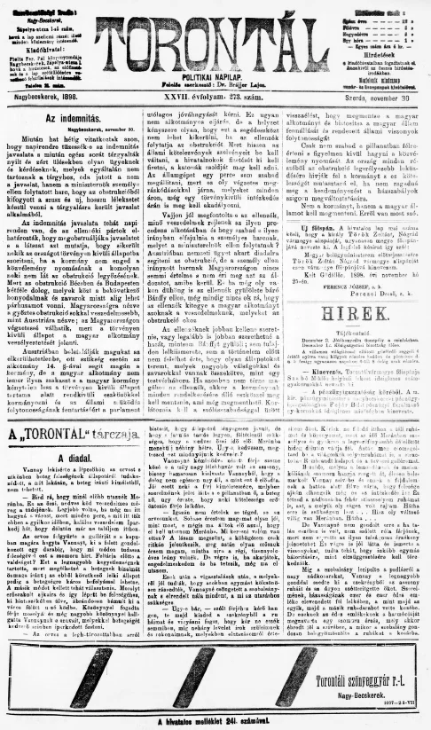 Torontál, 27. évf. 1898. november 30. 273. sz.