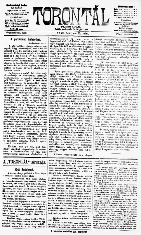 Torontál, 27. évf. 1898. november 4. 251. sz.