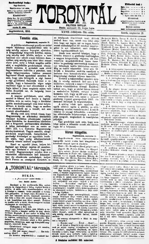 Torontál, 27. évf. 1898. szeptember 21. 214. sz.