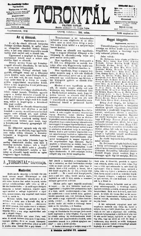 Torontál, 27. évf. 1898. szeptember 5. 201. sz.