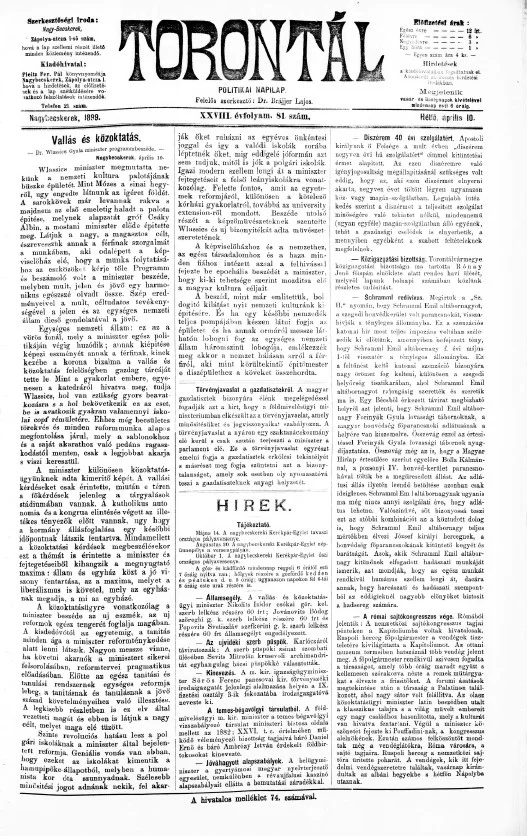 Torontál, 28. évf. 1899. április 10. 81. sz.