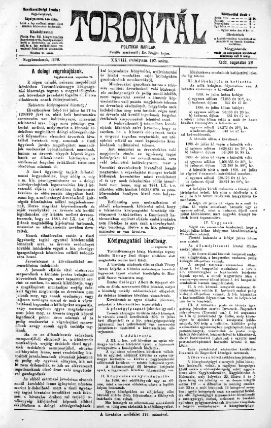 Torontál, 28. évf. 1899. augusztus 29. 197. sz.