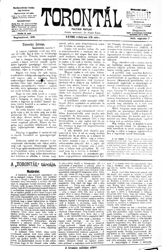 Torontál, 28. évf. 1899. augusztus 7. 179. sz.