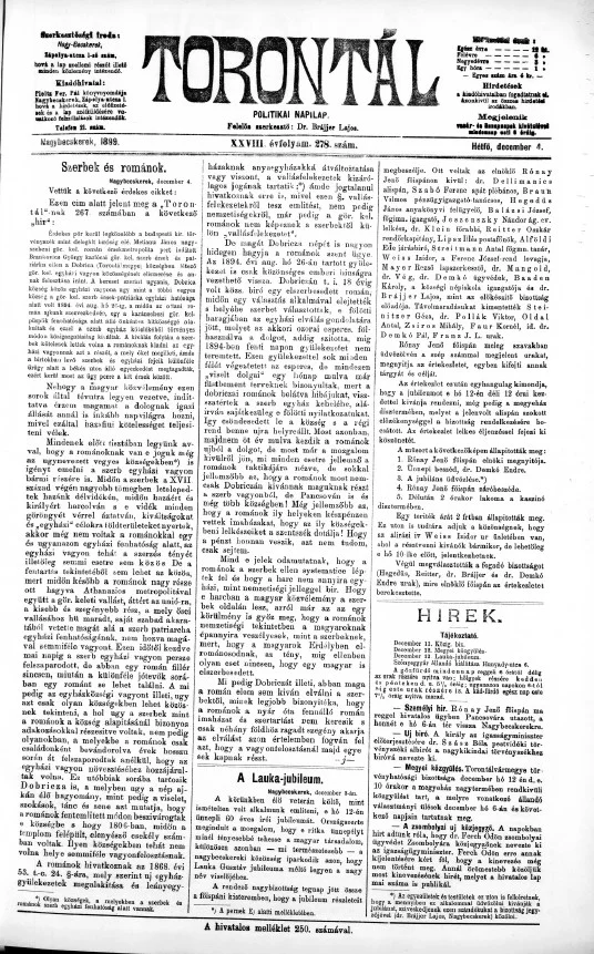 Torontál, 28. évf. 1899. december 4. 278. sz.