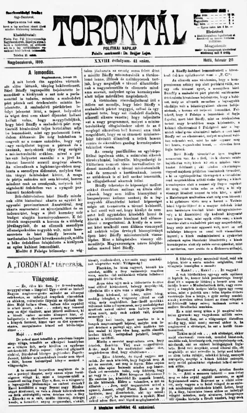 Torontál, 28. évf. 1899. február 20. 41. sz.