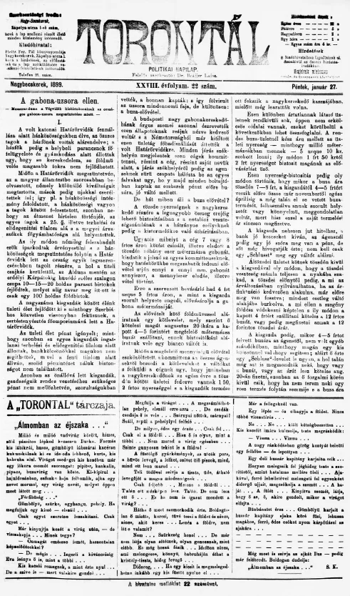 Torontál, 28. évf. 1899. január 27. 22. sz.