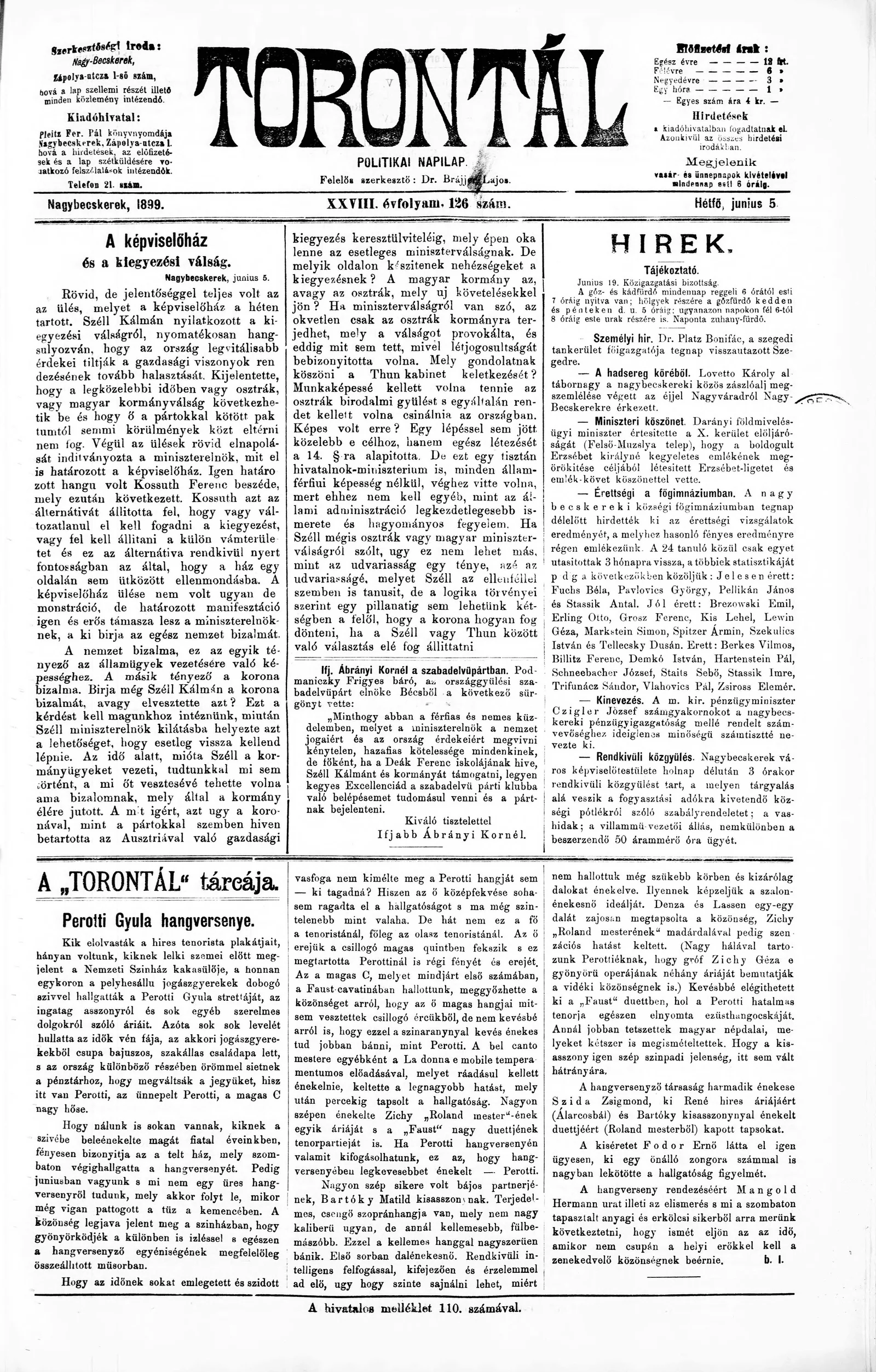 Torontál, 28. évf. 1899. június 5. 126. sz.