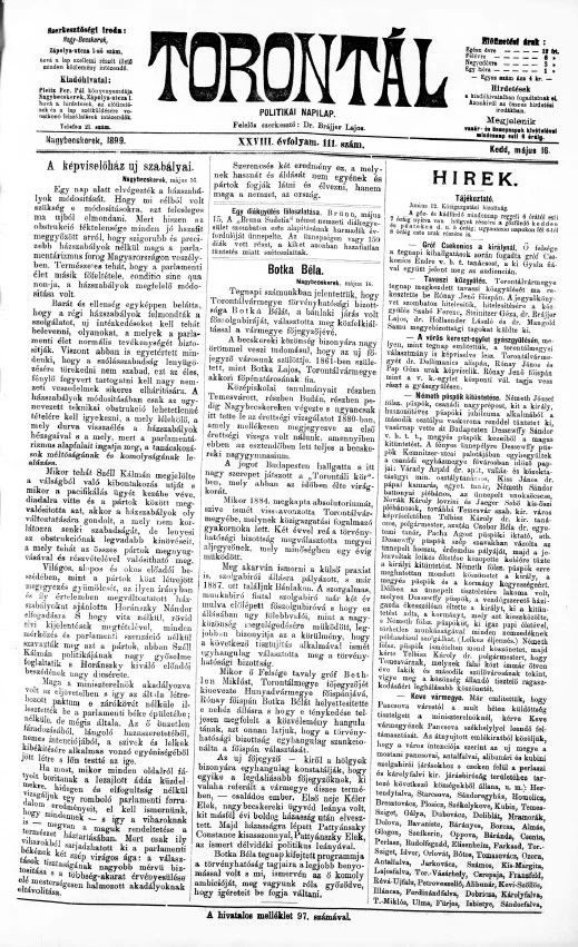 Torontál, 28. évf. 1899. május 16. 111. sz.